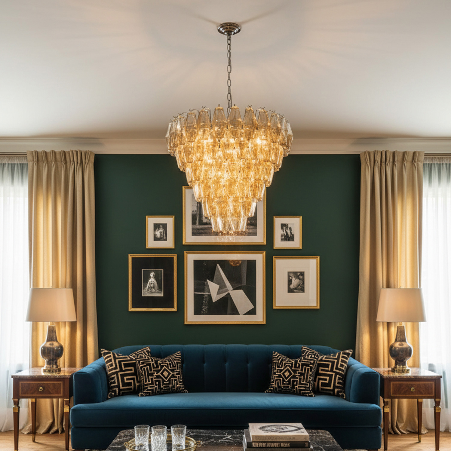 Cosima Glass Chandelier, Simple American Mage Retro, Chandelier Light for Living Room, Dining Room, Kitchen Study