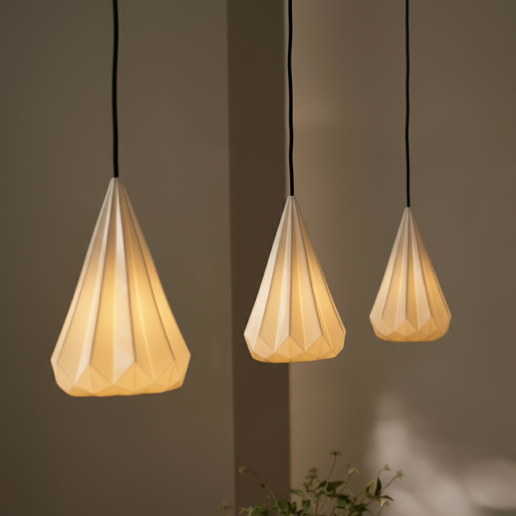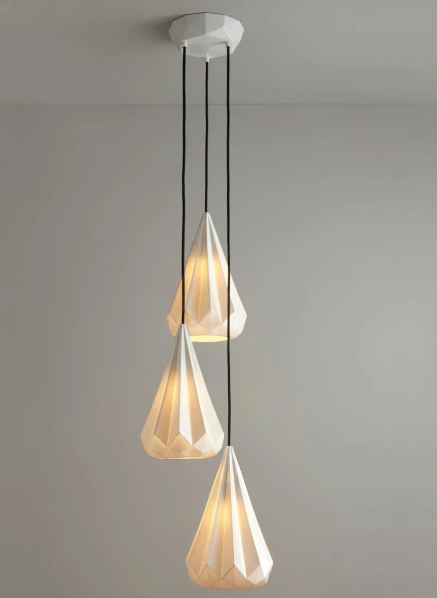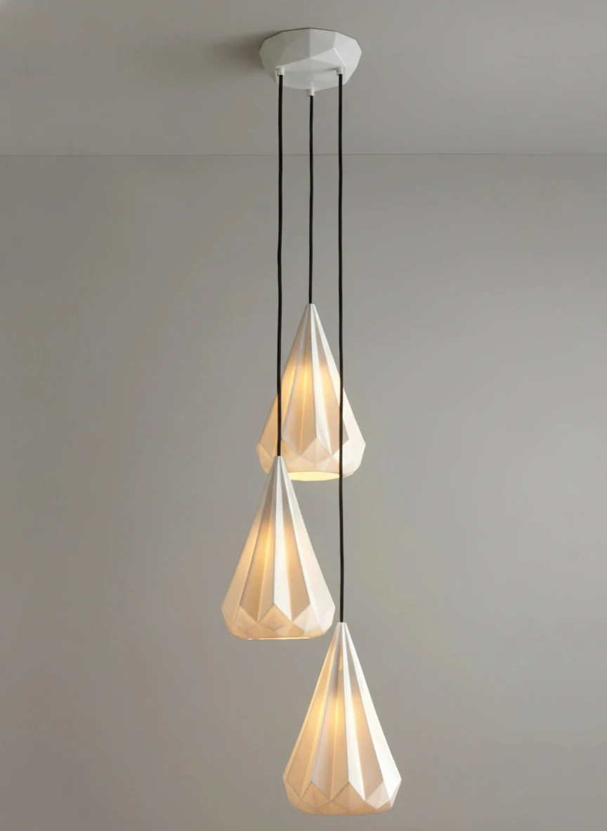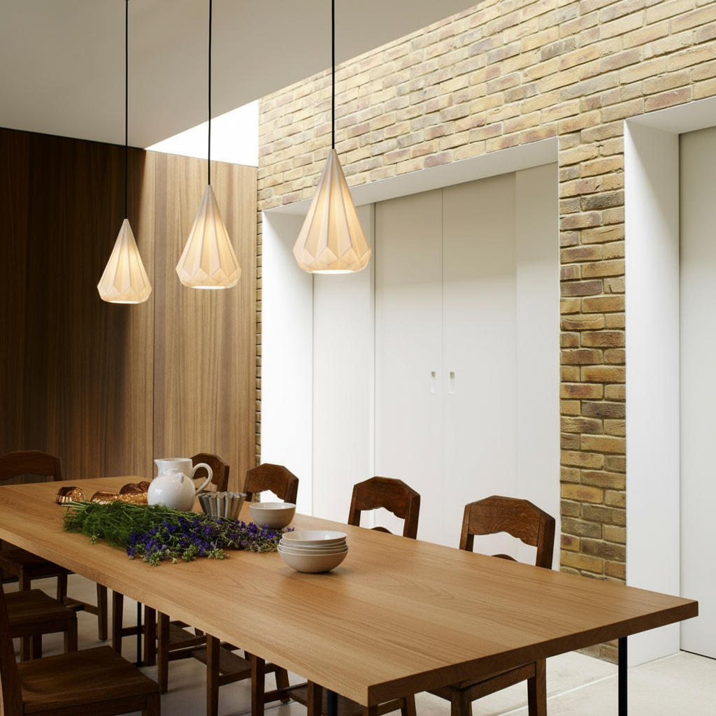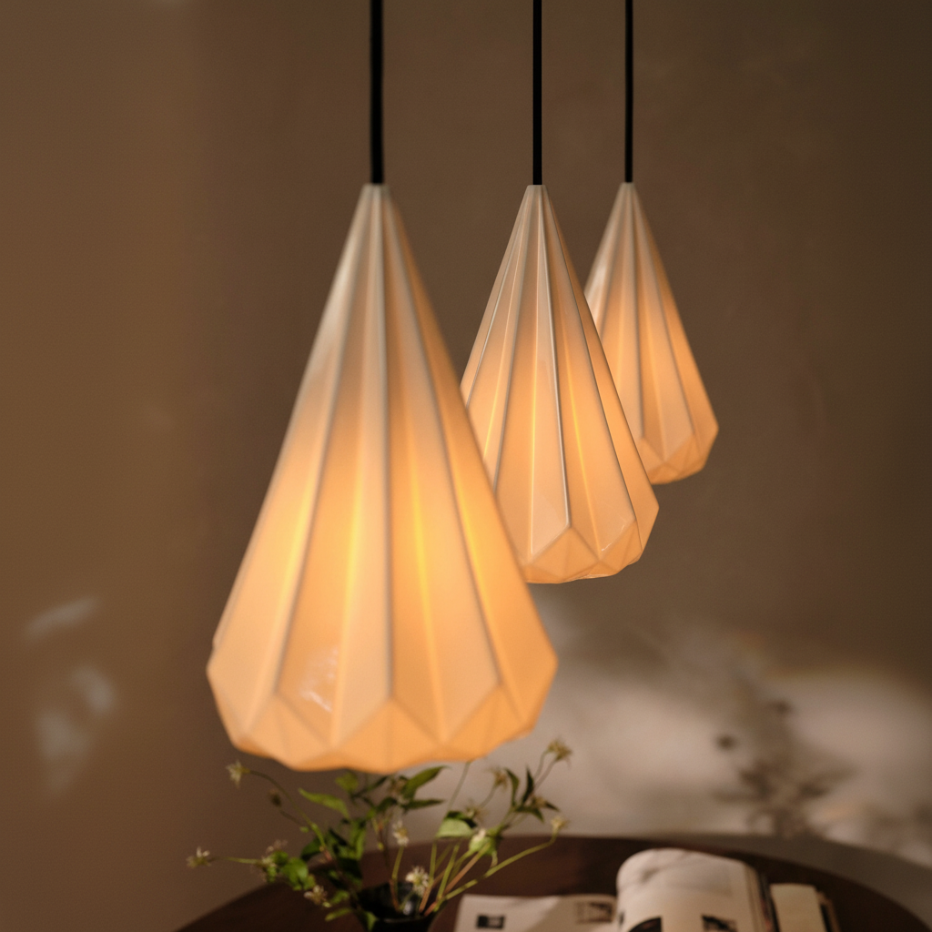 Hatton 3 Bone Ceramic Diamond Shape, Simple American Mage Retro, Pendant Light for Living Room Dining Room Bedroom Kitchen Study